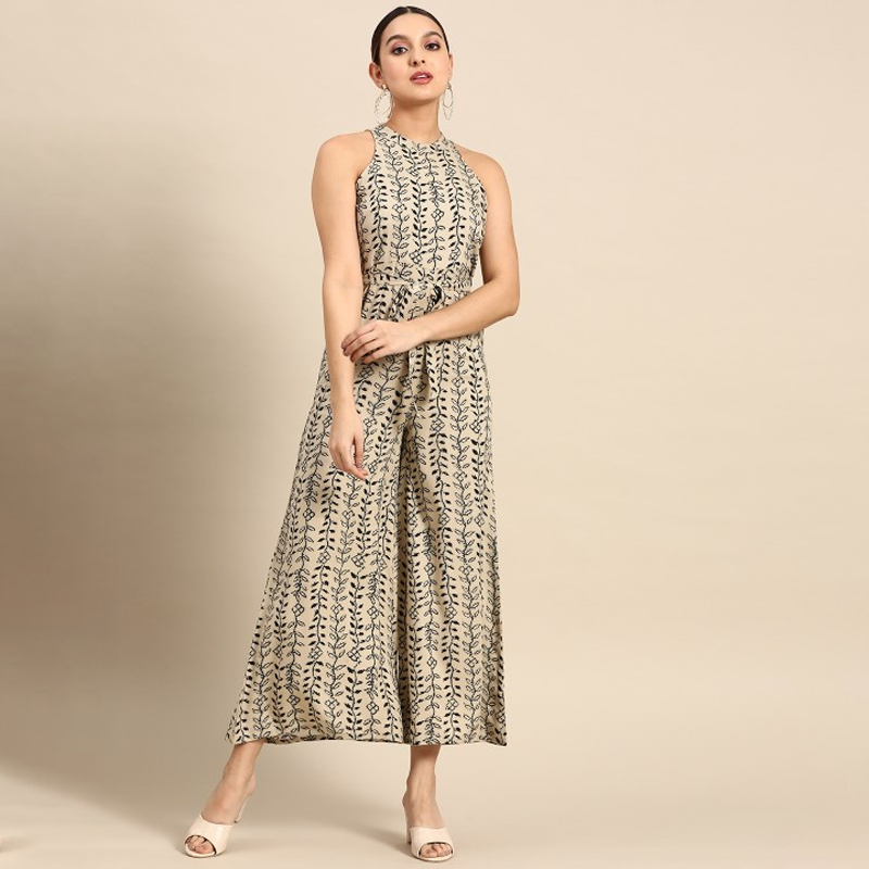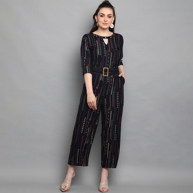 Navy Blue & White Foil Printed Basic Jumpsuit