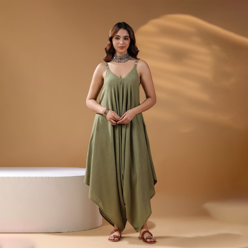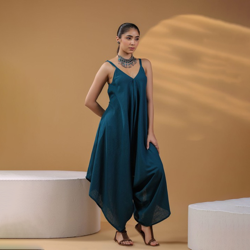 Women Cotton Shoulder Straps Basic Jumpsuit